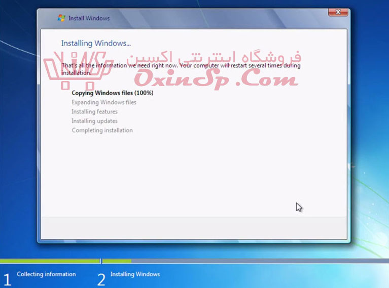 کمی صبر کنید تا فایل های ویندوز از روی دی وی دی یا فلاش دیسک شما بارگیری شود
