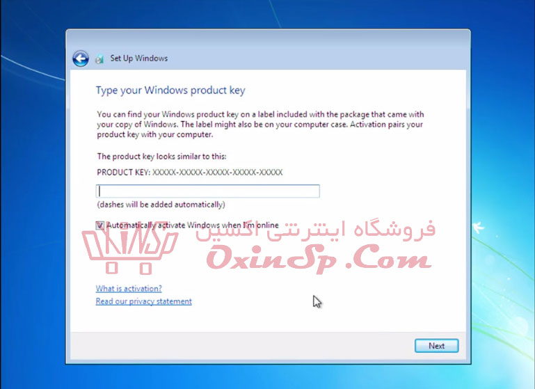 اگر از ویندوز اصلی استفاده میکنید کلید را وارد کرده و در غیر این صورت بدون پر کردن جای خالی دکمه Next را بزنید.