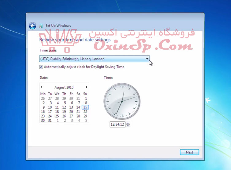 آموزش نصب ویندوز ۷ – مرحله دهم – تنظیم منطقه زمانی در هنگام نصب ویندوز ۷