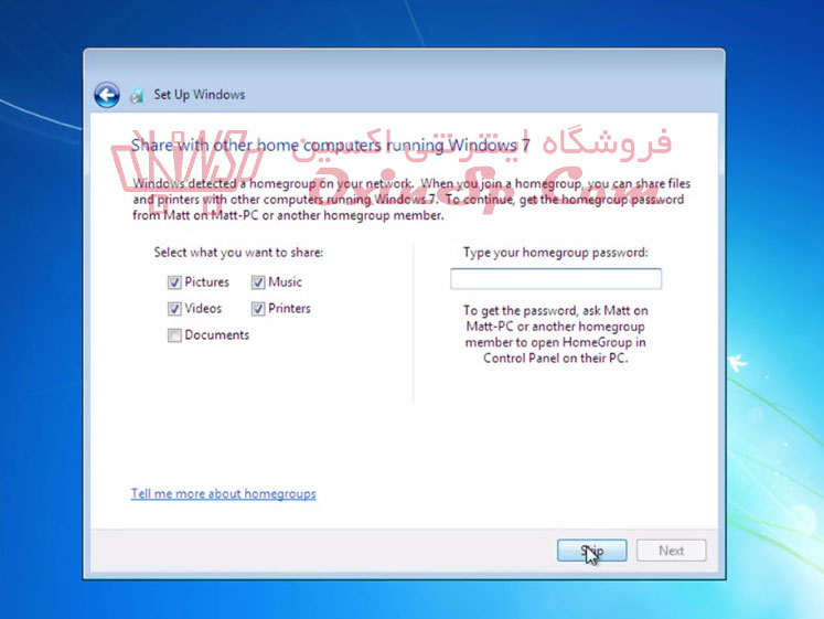در صفحه زیر گزینه ی Skip را بزنید.