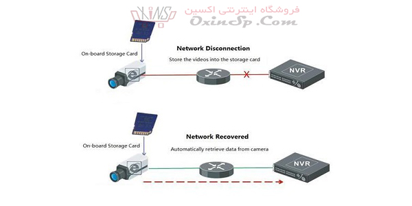 در صورتی که به دلایل مختلف ارتباط دوربین و NVR قطع شود ، تصاویر دوربین مدار بسته روی SD Card ضبط شده و عملیات ضبط ادامه پیدا می کند.